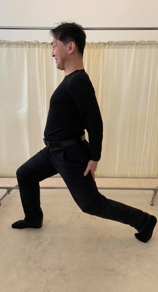 ここのストレッチで代表的なのが、「片膝を立てて腰を前に押し出すストレッチ」。